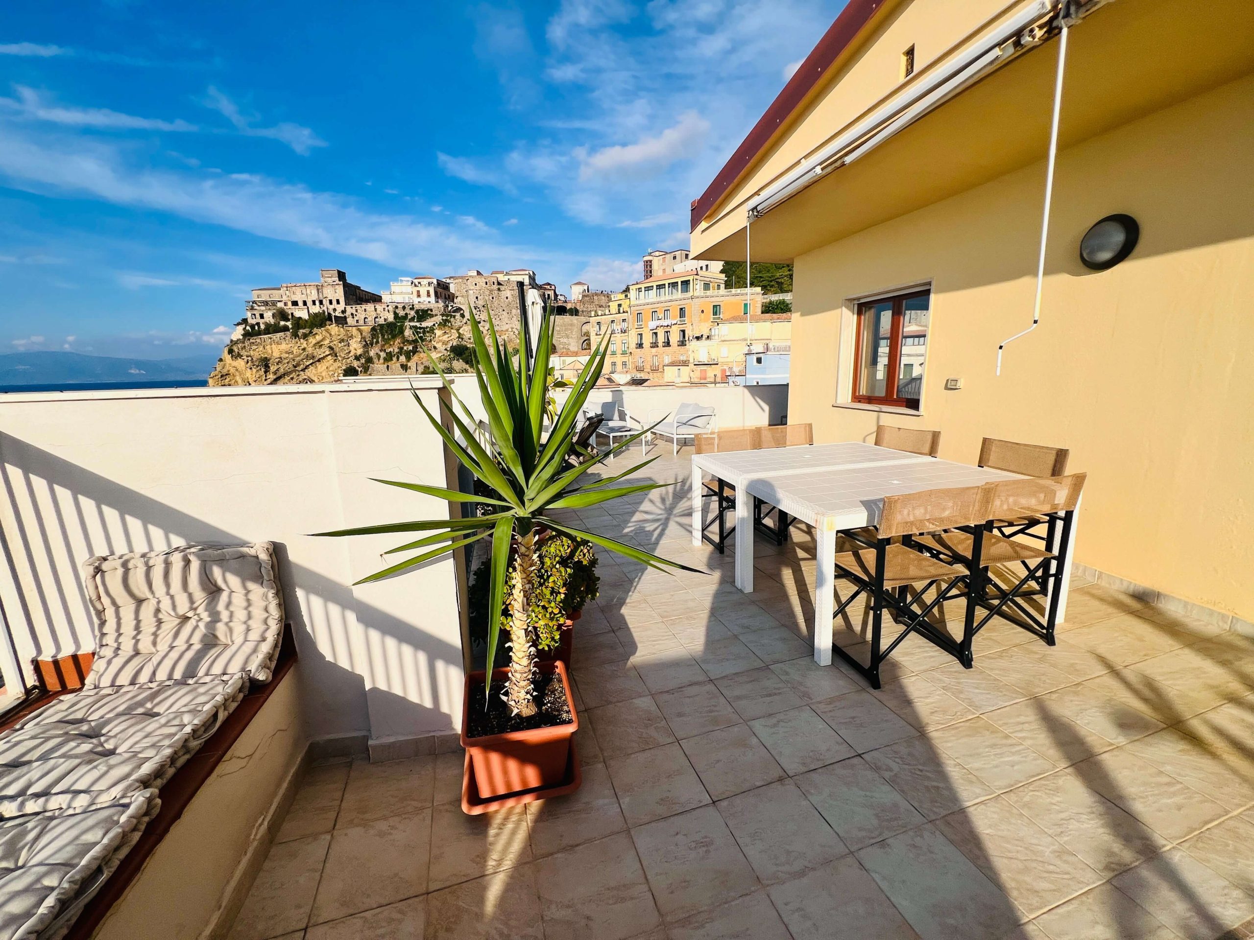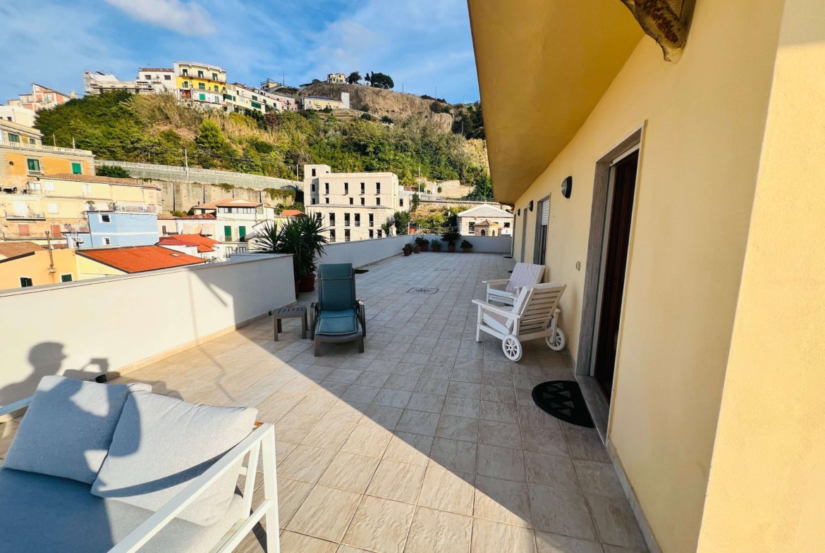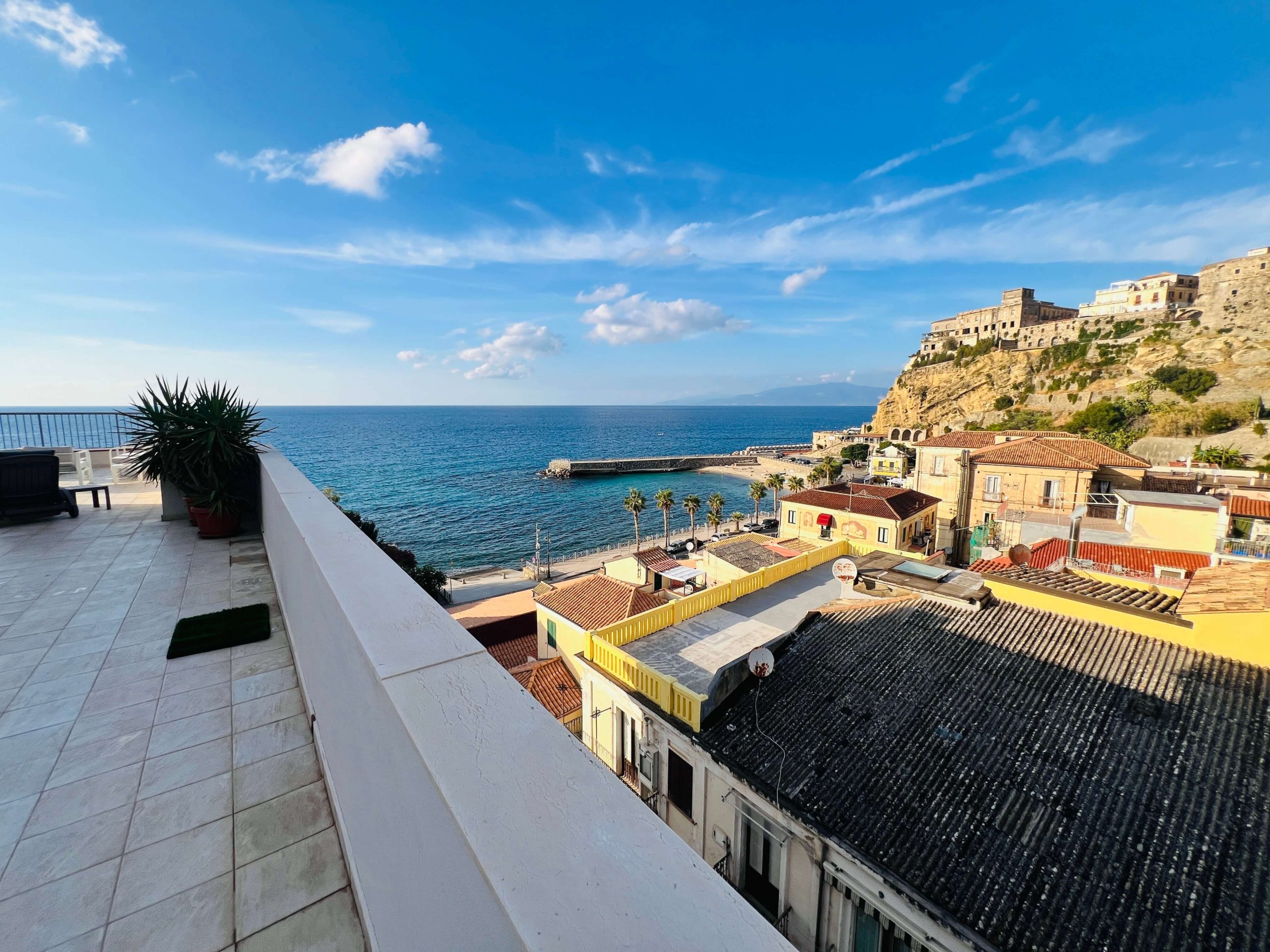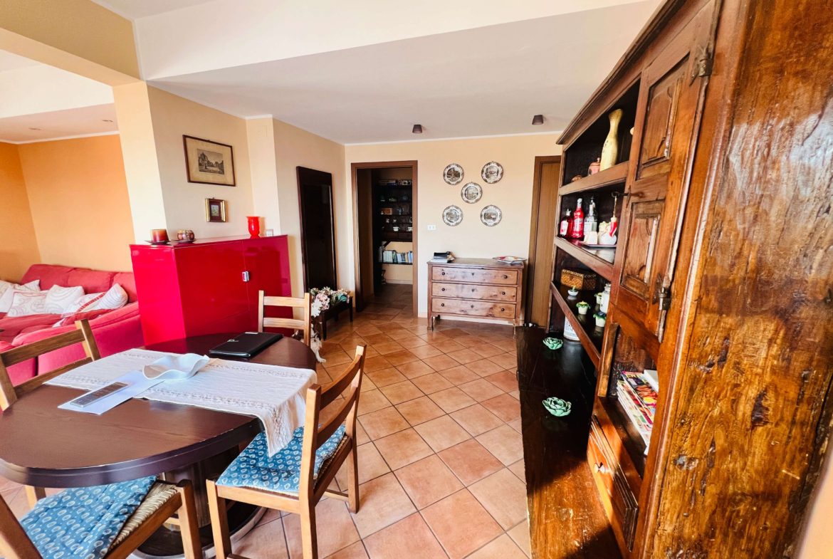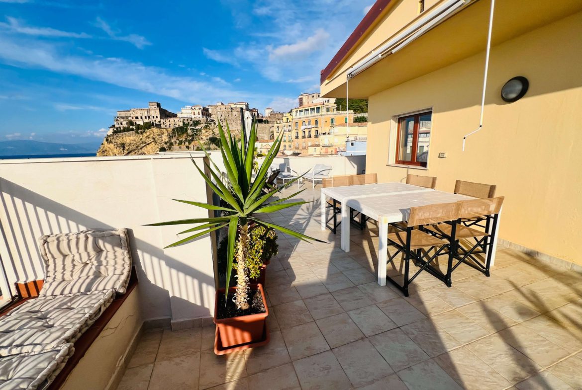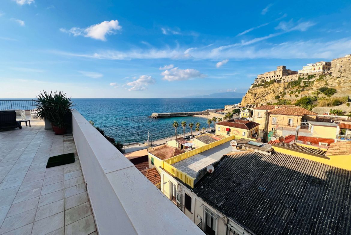 Pizzo (VV), in via Libertà, in una posizione unica che garantisce la vista sul mare e scorci del piccolo borgo, si propone un appartamento posto al sesto piano servito da ascensore. Entrando troveremo l’ingresso che si apre sullo spazioso e luminoso salone con vista sul mare. Le vedute sul Golfo sono aperte, anche grazie alla terrazza panoramica alla quale si accede tramite portafinestra e dove si potrà pensare ad una zona lounge per ritagliarsi piccoli momenti di relax e convivialità. Dal salone si accede alla cucina con porta che consente di isolare eventuali odori. Ad ultimare la zona giorno troveremo il bagno con box doccia ed un piccolo ripostiglio, che offrono il massimo della versatilità e del comfort. Dall’area living si accede al disimpegno che conduce alla prima camera matrimoniale dotata di accesso al terrazzo. Il corridoio, connotato dalla semplicità e continuità cromatica, permette di accedere alla zona notte che accoglie ulteriori due camere di cui una singola ed una matrimoniale. Quest’ultima, di dimensioni generose, ha accesso diretto ad un balconcino e bagno en-suite con vasca. Completano la zona notte un terzo bagno con box doccia ed una ulteriore camera con accesso diretto alla terrazza. Questo appartamento rappresenta un’opportunità straordinaria, che unisce comfort e panorama, ideale per chi desidera vivere in un ambiente in grado di donare al contempo momenti di relax ed una vista panoramica dove ogni tramonto diventa un ricordo indimenticabile.